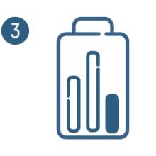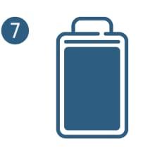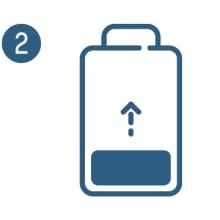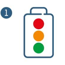 Immediately after inserting the capacity quick test determines the residual charge of your battery and displays it via the LED for 5 seconds: Red: <25% Yellow: 25-75% Green: >75%